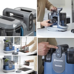 Technologie Dual Tank: réservoirs d'eau amovibles pour faciliter le remplissage et la vidange. Le système à deux réservoirs permet de nettoyer avec de l'eau propre tandis que la saleté et la poussière sont stockées dans un réservoir séparé. La capacité du réservoir d'eau douce est de 1.6l et la capacité du réservoir d'eau usée est de 0.8l.