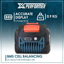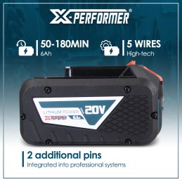 Cette batterie lithium 20V s’adapte sur tous les outils de la gamme X-Performer nouvelle génération (ne convient pas pour la gamme X-Performer blanche) et est compatible avec les chargeurs XPCHAR20-SR1, XPCHAR20-SSR3, XPCHAR20-SSR4, XPCHAR20-DR1 ou XPCHAR20-DSR2).