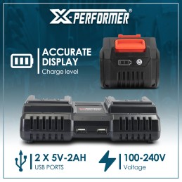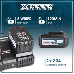 Ce chargeur vous permet de charger les batteries X-Performer nouvelle génération XPBAT20-2A, XPBAT20-4A, XPBAT20-6A et XPBAT20-8A (ne convient pas pour les anciennes générations XPBAT2A et XPBAT4A).