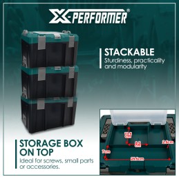 Le coffret de rangement X-PERFORMER – Taille L est conçu pour offrir une organisation optimale, une protection renforcée et une excellente mobilité. Pensé pour un usage intensif, il combine solidité, praticité et modularité afin de répondre aux contraintes du terrain comme de l'atelier.