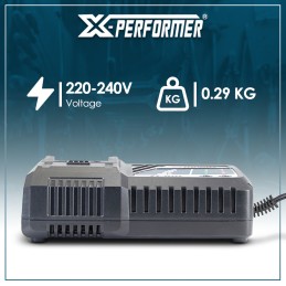 Ce chargeur vous permet de charger les batteries X-Performer nouvelle génération XPBAT20-2A, XPBAT20-4A, XPBAT20-6A et XPBAT20-8A (ne convient pas pour les anciennes générations XPBAT2A et XPBAT4A).