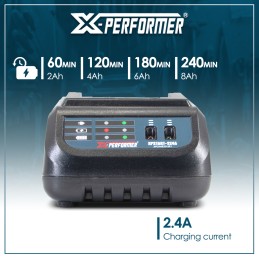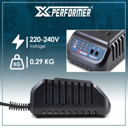 Ce chargeur vous permet de charger les batteries X-Performer nouvelle génération XPBAT20-2A, XPBAT20-4A, XPBAT20-6A et XPBAT20-8A (ne convient pas pour les anciennes générations XPBAT2A et XPBAT4A).