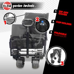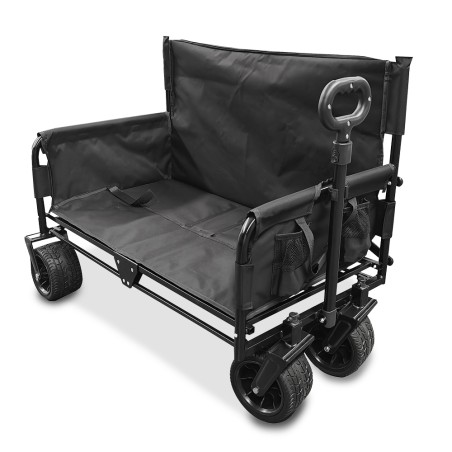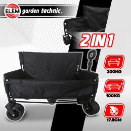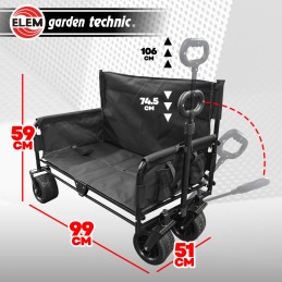 - Equipé de roues tout terrain (dont 2 pivotantes à 360°) d’un diamètre de 17.8cm, ce chariot vous sera utile au jardin, à la plage, pour un pique nique…