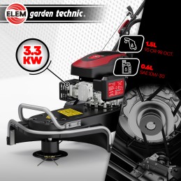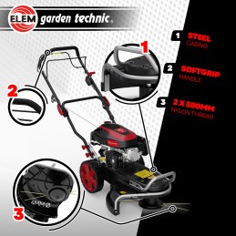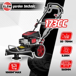 Cette débroussailleuse sur roues de la marque Elem Garden est idéale pour débroussailler, tondre ou faucher des espaces verts de 1000M² max.