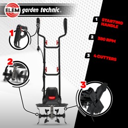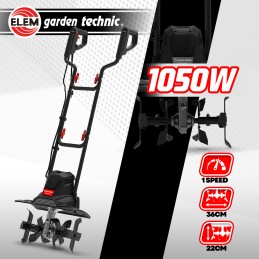 Cette puissante motobineuse électrique 1050w de la marque Elem Garden Technic est l’outil idéal pour l’entretien de son potager ou de son jardin. Elle vous permet un travail rapide et efficace grâce à sa surface de travail d’une largeur de 36 cm. De plus, elle est capable d’atteindre une profondeur de travail de 22 cm. Puissante et légère, cette motobineuse électrique vous offre un confort de travail optimal.