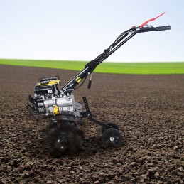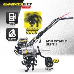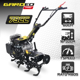 Ce motoculteur thermique de la marque Gardeo Pro est équipé d'un moteur Rato R80 de 79CC à axe horizontal. C'est un motoculteur professionnel conçu pour les agriculteurs et les paysagistes. Fabriqué avec des matériaux durables et fiables, il est idéal pour labourer les petites et moyennes parcelles, y compris les cultures, les potagers et les jardins jusqu'à 350m².