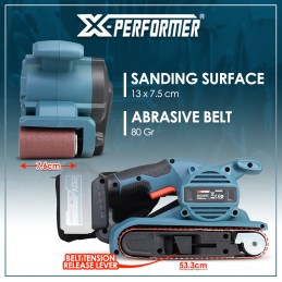 La ponceuse à bande sans fil XPBS7653BL est idéale pour le ponçage du bois, la rénovation de meubles, le décapage et les travaux intensifs