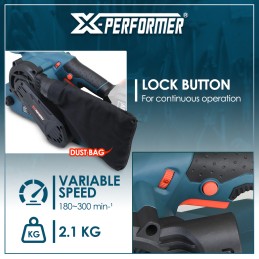Elle est fournie avec un sac récupérateur et une bande abrasive 76x533mm.