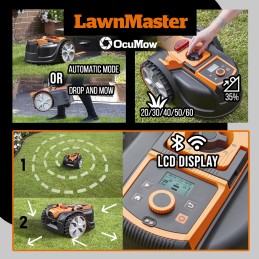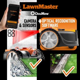 - Tout est contrôlé par simple pression sur un bouton via l'application intelligente OcuMow™, y compris la planification, la sécurité, les paramètres généraux, l'enregistrement des statistiques, etc…