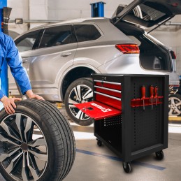 Ce chariot à outils en acier renforcé est équipé de panneaux latéraux perforés afin que vous puissiez l'accessoiriser facilement.