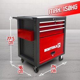 Mettez de l'ordre dans votre atelier et retrouvez facilement vos outils grâce à cette servante 5 tiroirs et ses accessoires ! De la marque Movitools, cette servante peut supporter une charge maximum allant jusqu'à 150 kg et dispose de 3 tiroirs à roulement à billes et d'un espace de rangement.