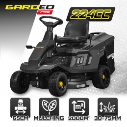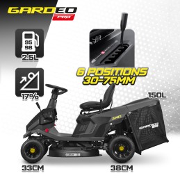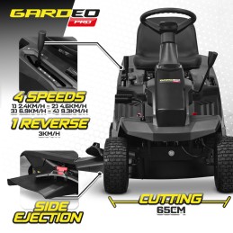 Le rider Gardeo Pro est équipé d’un moteur Loncin de 224cc / 4.5Kw et dispose d’un bac de ramassage arrière de 150L mais aussi d’une éjection latérale.