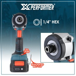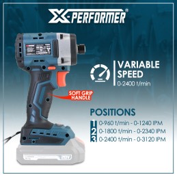 La visseuse à chocs XPID220BL vous offre une expérience d’utilisation excellente. Elle dispose d’une lampe LED qui éclaire la zone de travail ainsi qu’une poignée softgrip qui assure une prise en main optimale.